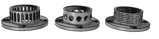 b、大圓孔主要用于普通混合工藝中減小物料顆粒尺寸。頭內圓形通孔使介質更好地作環(huán)形運動,適用于中等粘度物料的大循環(huán)。