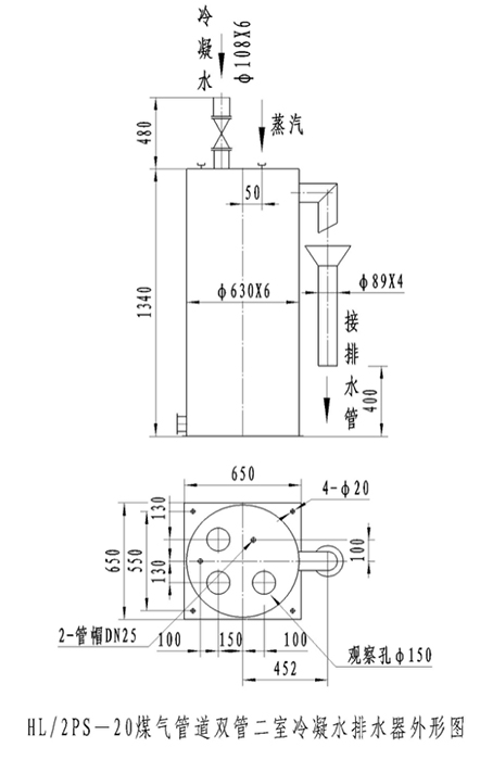 3、插入敝開室的DNl″蒸汽管,視南北地區的氣候條件決定是否需要接上外部蒸汽管,南方地區不接蒸汽管時需用管帽蓋上。