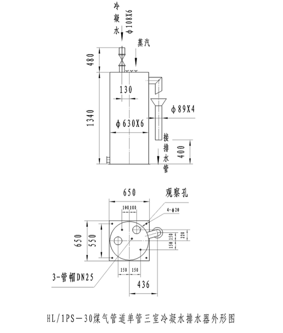 HL/1PS-30型煤氣管道單管三室冷凝水排水器